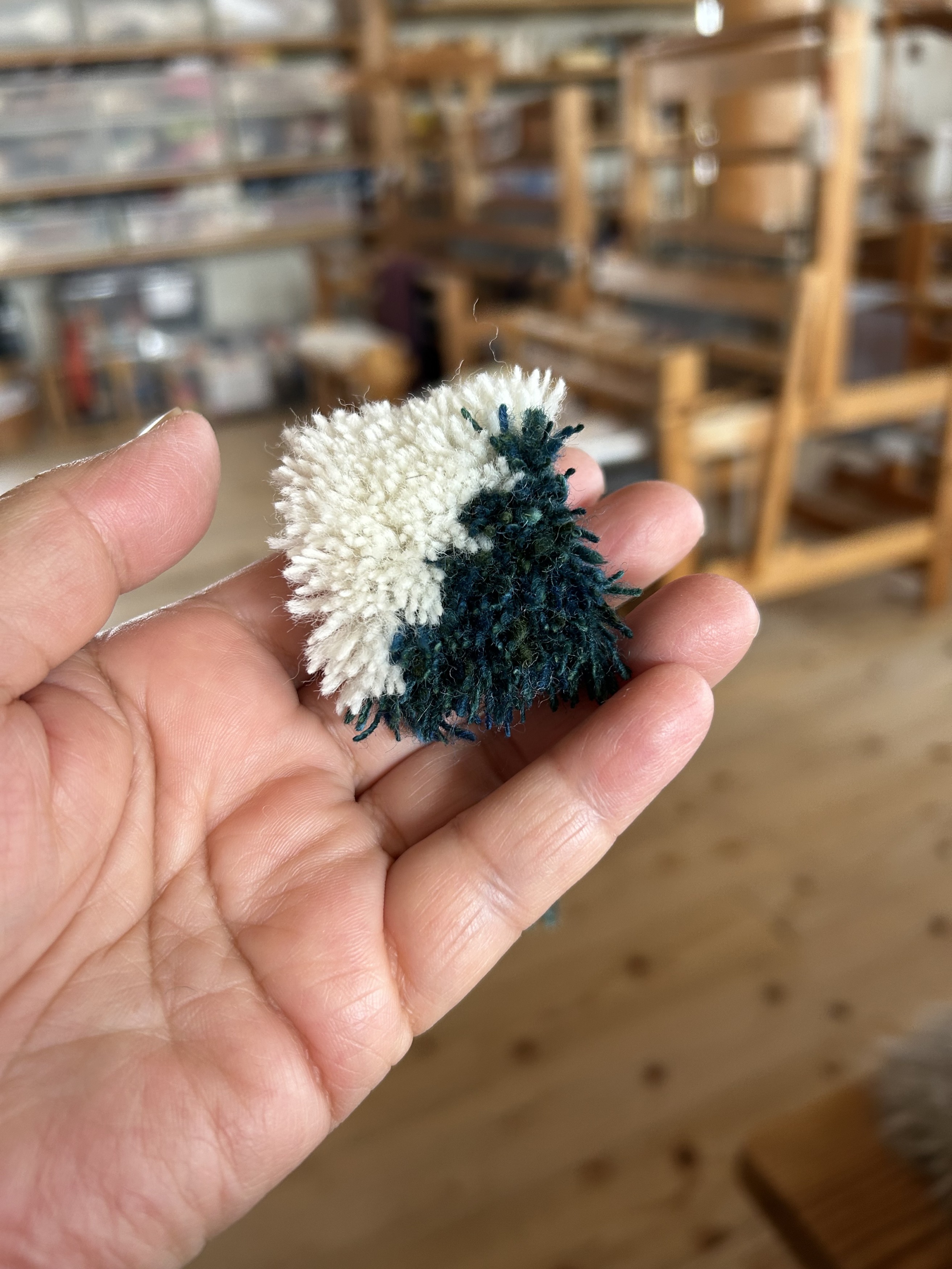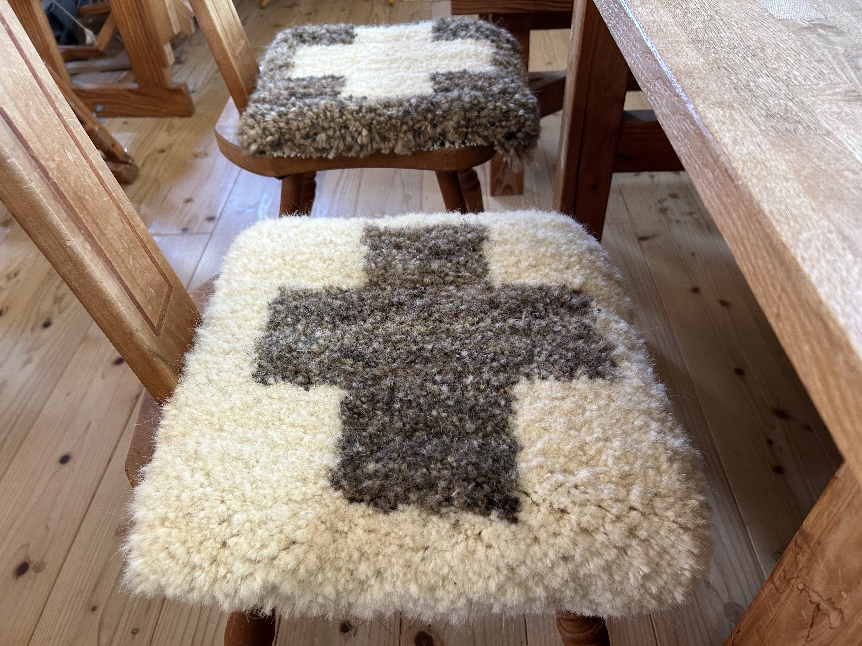 今年は十字模様の毛足が少し長いタイプを織りました。
