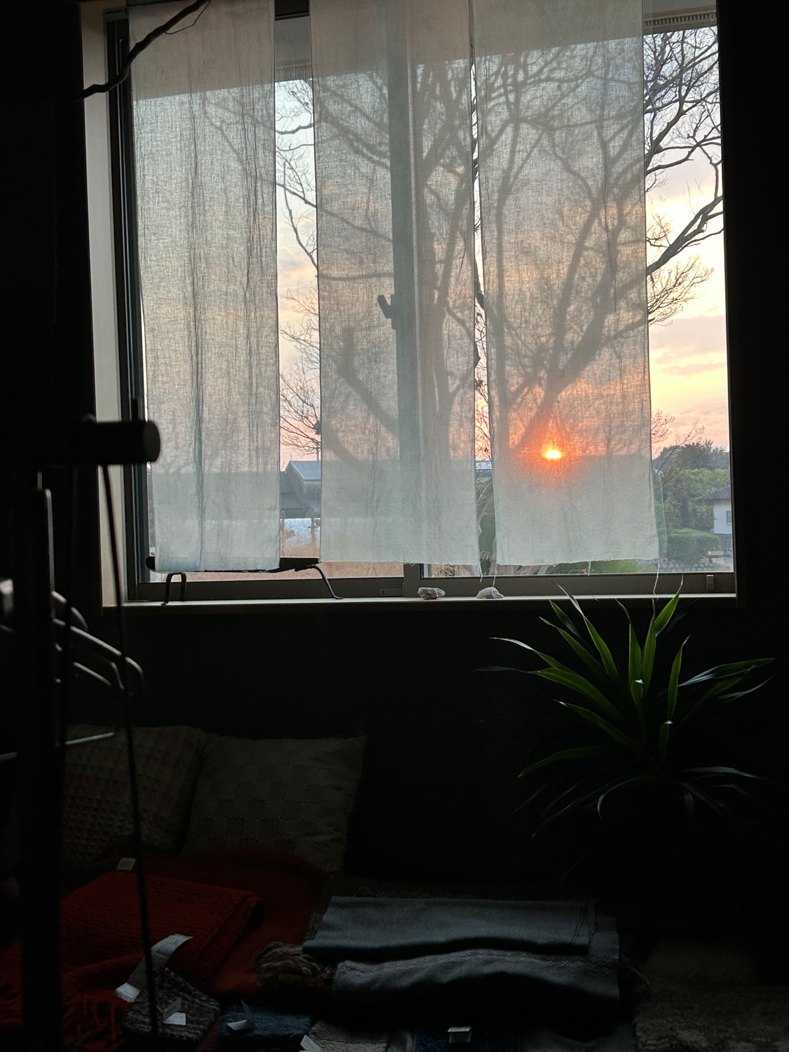 昨日までの楽しい会話の余韻が残る玄関ギャラリーに朝日が昇る。