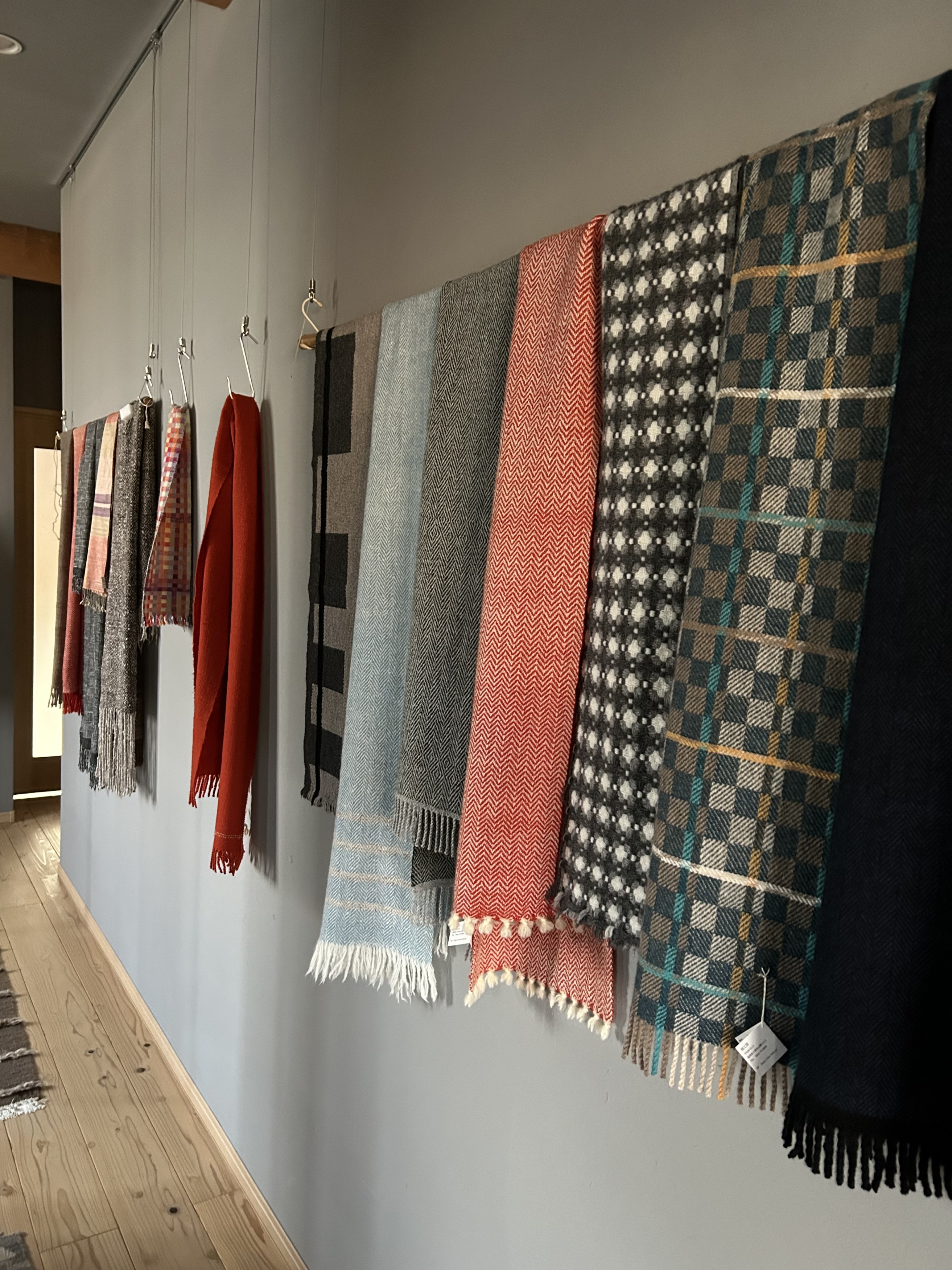 玄関ギャラリーには、まだまだ可愛いマフラーを飾っています。