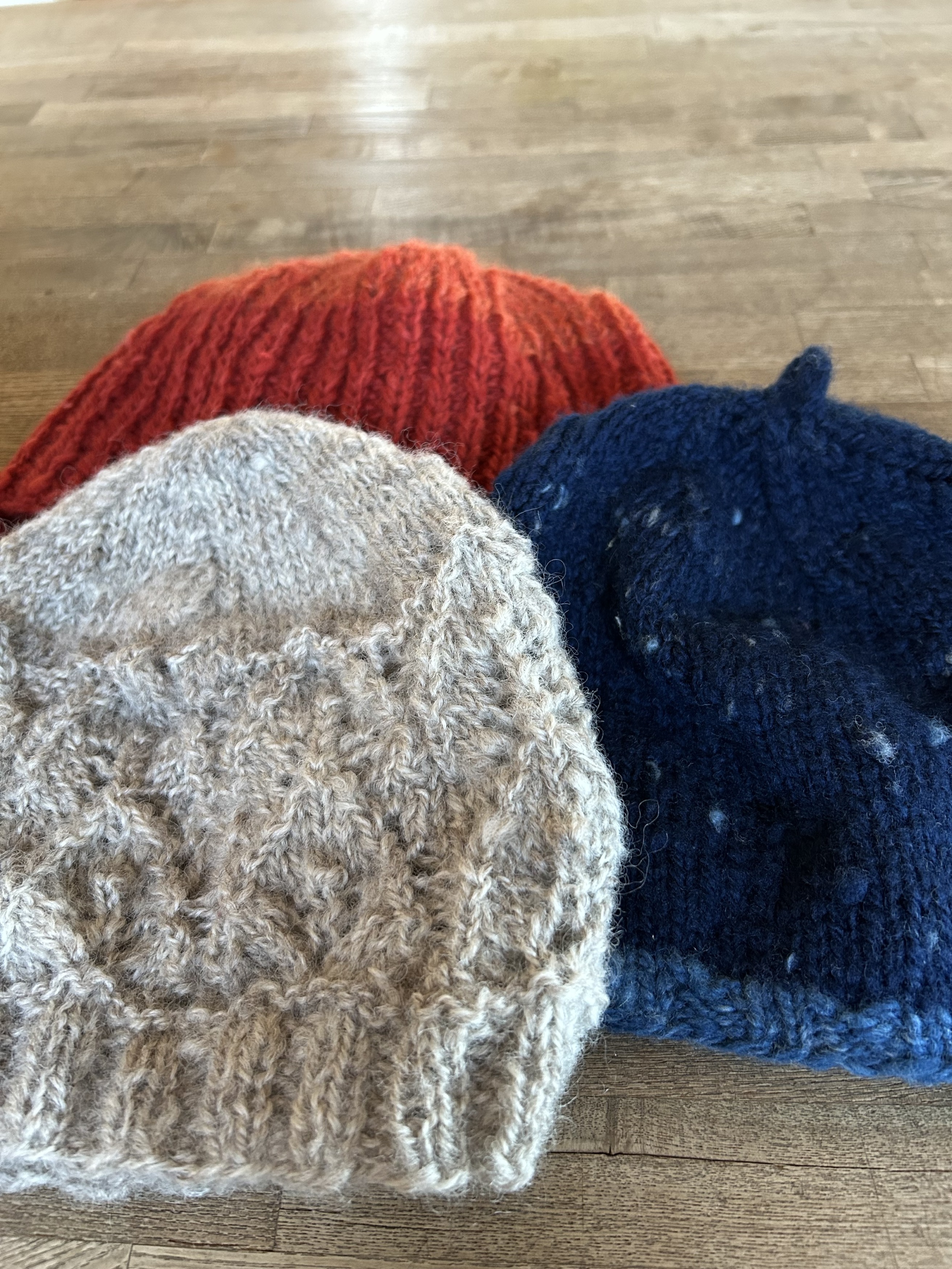 早速生徒さんが数日で帽子を編んできました。あれ~、一昨年セイタカアワダチ草で染めた阿蘇の羊むーちゃんだ。